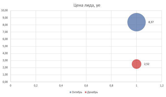 | Цена лида, уе | 8,37 | 3,65 | 2,52 | — 69,9% |